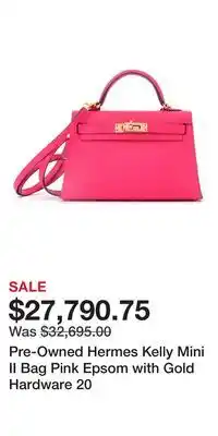 Nordstrom Pre-Owned Hermes Kelly Mini II Bag Pink Epsom with Gold Hardware 20 offerPre-Owned Hermes Kelly Mini II Bag Pink Epsom with Gold Hardware 20Nordstrom$32,695.00$27,790.75$4,904.25 Discount08 April 202614 April 2026