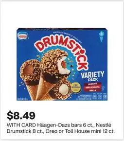 Häagen-Dazs bars 6 ct., Nestlé Drumstick 8 ct., Oreo or Toll House mini 12 ct