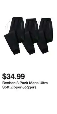 Kohl's Benben 3 Pack Mens Ultra Soft Zipper Joggers offer