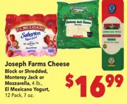 Super King Markets Joseph Farms Mozzarella, Monterey Jack Cheese Blocks or Shredded Cheese offerJoseph Farms Mozzarella, Monterey Jack Cheese Blocks or Shredded CheeseSuper King Markets$5.9911 March 202617 March 2026
