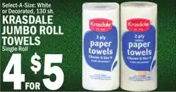 | KRASDALE 130 sh. JUMBO ROLL TOWELS Single Roll Bathroom, White, 175. 2 PLY TISSUE | C Town | | $5.00 | | 31 October 2025 | 06 November 2025 |