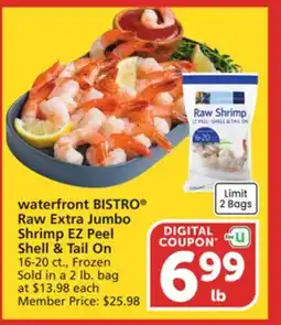| waterfront BISTRO Raw Extra Jumbo Shell-On Shrimp | Vons | $4.97 | 31 July 2024 | 06 August 2024 | |||