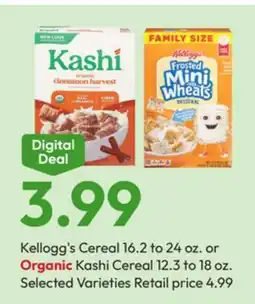 5Albertsons Kellogg's Large Cereal 12-20.9 oz. or Kashi 8-18 oz offerKellogg's Large Cereal 12-20.9 oz. or Kashi 8-18 ozAlbertsons$2.9904 February 202610 February 2026 View offer