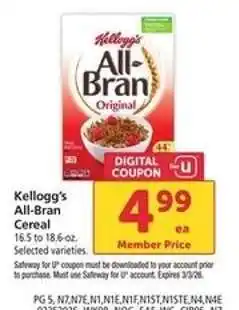 Safeway Kellogg's All-Bran Cereal offer