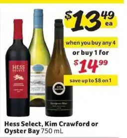 Winn Dixie Hess Select, Kim Crawford or Oyster Bay offer