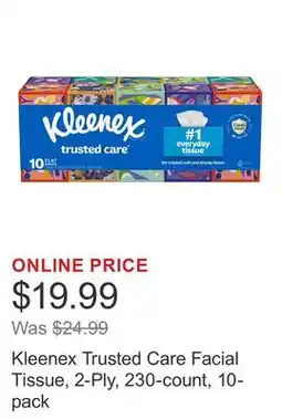 | Kleenex Trusted Care Facial Tissue, 2-Ply, 230-count, 10-pack | Costco | $19.99 | 30 December 2025 | 04 January 2026 | |||