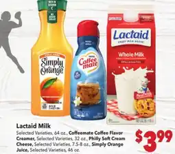 This week there are 4 Lactaid deals valid. Use the filters to find the deals from your favorite store or product. You can save the search to be notified when Lactaid is on deal again at a store near you.