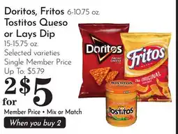 | Lay's, Doritos, SunChips or Miss Vickie's 4.75-10.75 oz. Tostitos Queso or Lay's Dip 15-15.75 oz | Pavilions | $2.49 | 23 July 2025 | 29 July 2025 | |||