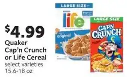 | 1 | Quaker Cap'n Crunch or Life Cereal | Fareway | $4.99 | 18 January 2026 | 24 January 2026 | View offer | |||