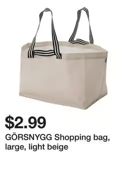 | GÖRSNYGG Shopping bag, large, light beige | Ikea | $2.99 | 04 March 2026 | 09 March 2026 | |||