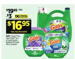 1Dollar General Gain Flings!, Super Flings or Liquid Laundry Detergent Load offerGain Flings!, Super Flings or Liquid Laundry Detergent LoadDollar General$16.95-15%18 January 202624 January 2026 View offer