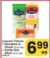 Lucerne Cheese Shredded or Chunk 32 oz. pkg., Family Size Slices 24 oz. pkg