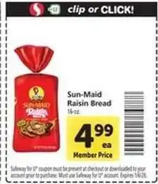 Safeway Sun-Maid Raisin Bread offer