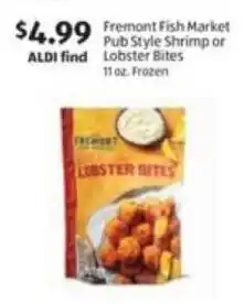 1Aldi Fremont fish market pub style shrimp or lobster bites offerFremont fish market pub style shrimp or lobster bites 11 oz.Aldi$4.9928 January 202603 February 2026 View offer