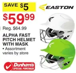 Dunham's Sports ALPHA FAST PITCH HELMET WITH MASK offerALPHA FAST PITCH HELMET WITH MASKDunham's Sports$65.21$59.99$5.22 Discount18 April 202623 April 2026