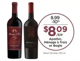 Mariano's Bogle, Apothic or Ménage à Trois offerBogle, Apothic or Ménage à TroisMariano's$6.9902 January 202606 January 2026
