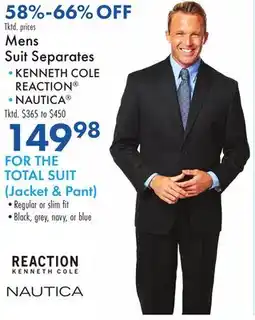 | Mens Suit Separates | Boscov's | $149.98 | 01 January 2026 | 07 January 2026 | |||