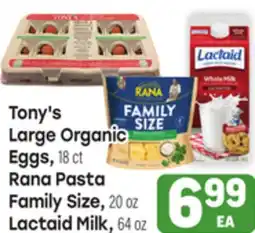 Tony’s Fresh Market Tony's Large Organic Eggs, 18ct Rana Pasta Family Size, 20oz Lactaid Milk, 64oz offer
