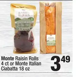 Super King Markets Monte Raisin Rolls 4 ct or Monte Italian Ciabatta 18 oz offer