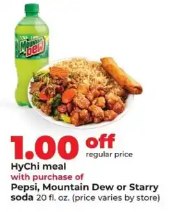 1Hy-Vee Pepsi or Mountain Dew and Starry soda offerPepsi or Mountain Dew and Starry soda 20 fl ozHy-Vee$1.0002 February 202602 March 2026 View offer