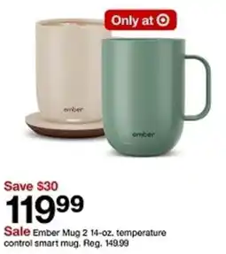 1Target Ember Mug offerEmber MugTarget$149.99$119.99$30.00 Discount08 February 202614 February 2026 View offer