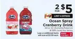 7ACME Ocean Spray 100% Cranberry Juice offerOcean Spray 100% Cranberry JuiceACME$3.4916 January 202622 January 2026 View offer