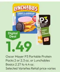 Oscar Mayer P3 Portable Protein Packs 2 or 2.3 oz. or Lunchables Basics 2.27 to 4.4 oz