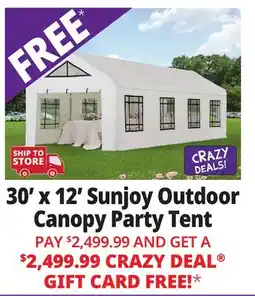 | Sunjoy 30' x 12' Outdoor Canopy Party Tent White | Ocean State Job Lot | $2,499.99 | 24 April 2025 | 30 April 2025 | |||