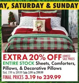 | 2 | ENTIRE STOCK Sheets, Comforters, Pillows, & Decorative Pillows | Boscov's | $3.19 | 25 December 2025 | 28 December 2025 | View offer | |||