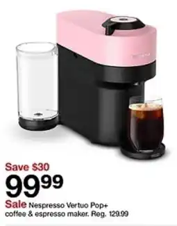 2Target Sale Nespresso Vertuo Pop+ coffee & espresso maker offerSale Nespresso Vertuo Pop+ coffee & espresso makerTarget$129.99$99.99$30.00 Discount08 February 202614 February 2026 View offer