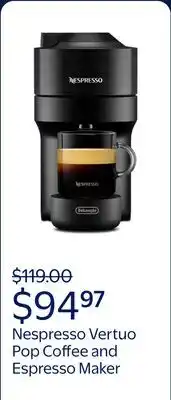 Walmart Nespresso Vertuo Pop by De'Longhi Coffee and Espresso Maker with Coffee Tasting Set, Black offer