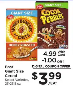 2Ralphs Post Giant Size Cereal offerPost Giant Size CerealRalphs$4.99$3.99$1.00 Discount28 January 202603 February 2026 View offer