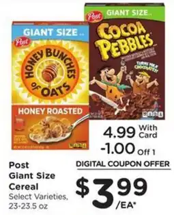 C Town POST HONEY BUNCHES OF OATS 18 OZ. BOXES Honeycomb (16 Oz.), PEBBLES CEREAL 15 OZ. BOXES offerPOST HONEY BUNCHES OF OATS 18 OZ. BOXES Honeycomb (16 Oz.), PEBBLES CEREAL 15 OZ. BOXESC Town$4.9923 January 202629 January 2026