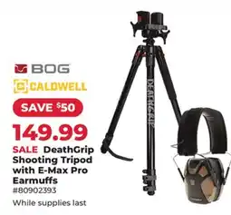 Runnings DeathGrip Shooting Tripod with E-Max Pro Earmuffs offerDeathGrip Shooting Tripod with E-Max Pro EarmuffsRunnings$199.99$149.99$50.00 Discount29 January 202608 February 2026