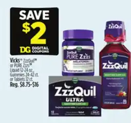 Dollar General Vicks ZzzQuil or PURE Zzzs Liquid, Gummies or Tablets offer