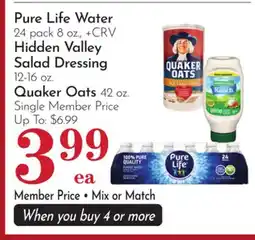 Pavilions Pure Life Water 24 pack 8 oz., Hidden Valley Salad Dressing 12-16 oz. Quaker Oats 42 oz offer