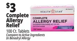 | Health Star 25 mg Complete Allergy Relief 100 Tablets | Ocean State Job Lot | $3.00 | 30 January 2025 | 05 February 2025 | |||