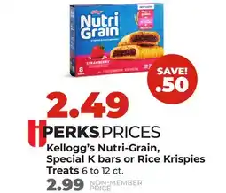 Hy-Vee Kellogg's Nutri-Grain, Special K bars or Rice Krispies Treats offer
