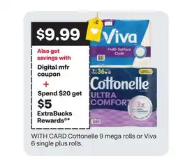 CVS Cottonelle 9 mega rolls or Viva 6 single plus rolls offer