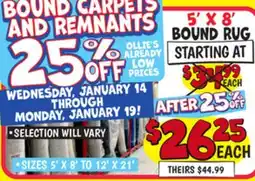 Ollie's 5' X 8' BOUND RUG offer5' X 8' BOUND RUGOllie's$26.2514 January 202621 January 2026