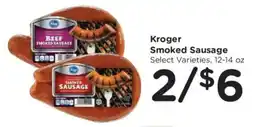 1Kroger Kroger Smoked Sausage offerKroger Smoked Sausage 12-14 ozKroger$6.0028 January 202604 February 2026 View offer