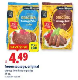 | Frozen sausage 24 oz | Lidl | $5.99 | 18 April 2025 | 24 April 2025 | |||