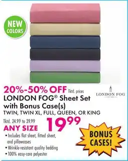 Boscov's LONDON FOG Sheet Set offerLONDON FOG Sheet SetBoscov's$24.99$19.99$5.00 Discount12 February 202618 February 2026