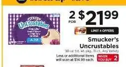 1ShopRite Smucker's Uncrustables offerSmucker's UncrustablesShopRite$21.9918 January 202624 January 2026 View offer