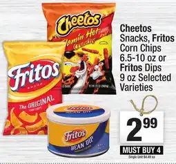 Cheetos Snacks, Fritos Corn Chips 6.5-10 oz or Fritos Dips 9 oz