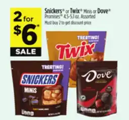 Dollar General Snickers or Twix Minis or Dove Promises offer
