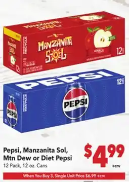 Vallarta Supermarkets Pepsi, Manzanita Sol, Mtn Dew or Diet Pepsi offer