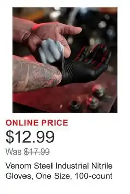 | Venom Steel Industrial Nitrile Gloves, One Size, 100-count | Costco | $18.04 | $12.99 | $5.05 Discount | 20 April 2026 | 26 April 2026 | |