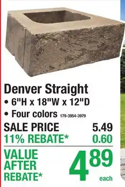 | DENVER Straight: 6H x 18W x 12D | Menards | $4.89 | 08 April 2026 | 19 April 2026 | |||
