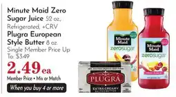 Pavilions Minute Maid Zero Sugar Juice 52 oz., Refrigerated, + CRV Plugra European Style Butter 8 oz offer